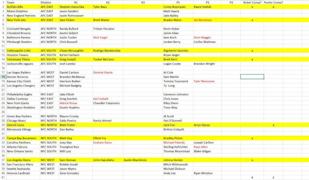 „Pace brought up the idea that you may have to carry a kicker on your practice squad“