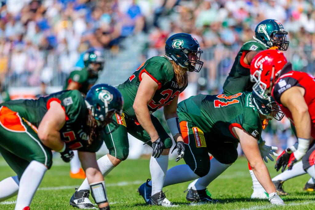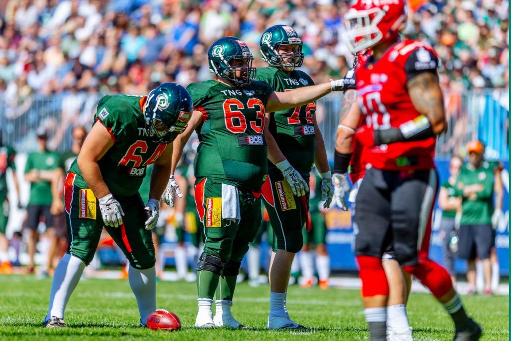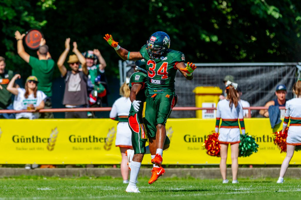 Julian Ampaw führt die Backs mit 340 Yards und einem Schnitt von knapp 50 Yards pro Spiel an. Genug, damit Verteidigungen den Lauf immer noch respektieren müssen. Sehr gut sind seine sechs Touchdowns. RB2 Fritjof Richter schafft knapp 20 Yards pro Spiel und hat zwei Touchdowns auf dem Konto. Der neue Import Aaron Bruning wird sicher in der zweiten Hälfte mehr Carries bekommen. Insgesamt läuft das Laufspiel immer gut, wenn man direkt die A oder B Lücke attackiert, alles laterale klappt bisher nur mäßig.