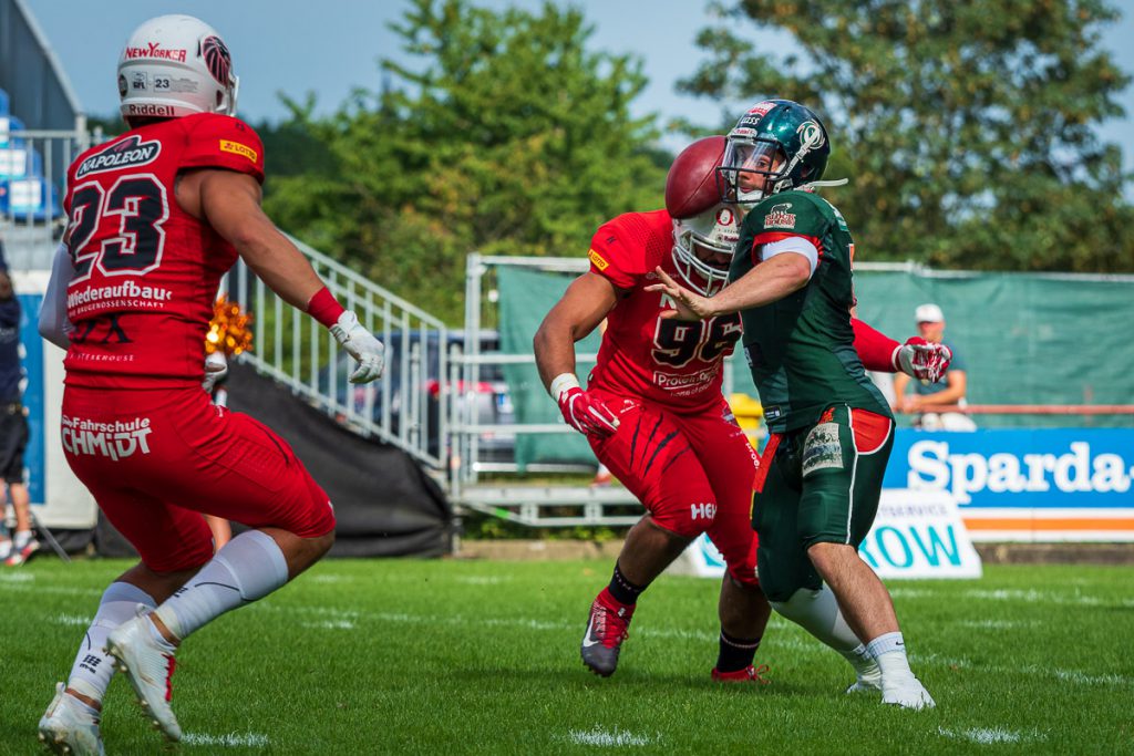 Der Drive endete mit sehr schönen Touchdown-Pass auf den gut aufgelegten WR Kwame Ofori. Kilia-Stadion am jubeln, Stimmung wie bei einem Sieg gegen Dresden. Naja, beinahe. Aber man merkte sofort, die Mannschaft wird hier nicht kampflos nach Hause gehen. Beim folgenden Kick-Off wieder ein gutes Beispiel: Der Kick ist zwar etwas kurz, aber Benedikt Englmann sorgt mit einem wunderhübschen Tackle für das Ende des Returns. Leider endete der nächste Drive der Lions auch wieder mit einem Touchdown. Aber das Leben war zurück im Spiel.